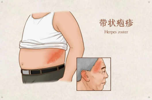 带状疱疹(俗称“蛇缠腰”)由水痘-带状疱疹病毒引起,大部分人小时候感染水痘后,病毒会潜伏在神经节,一旦免疫力下降(如疲劳、压力、衰老),病毒便被激活,沿神经“苏醒”,引发剧烈疼痛和簇集水疱。