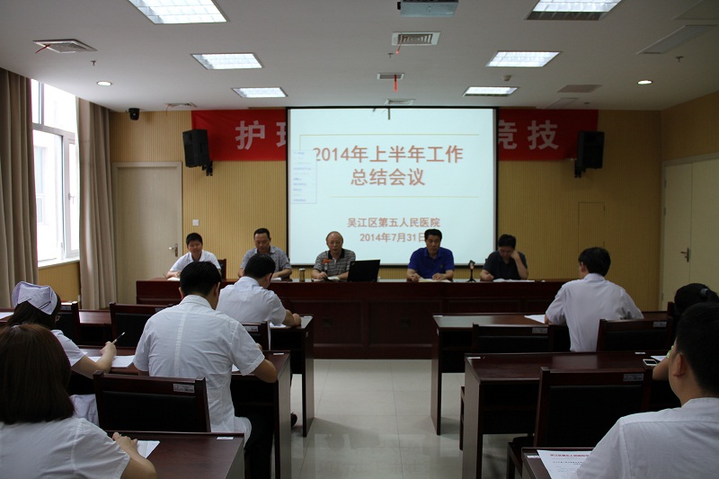 2014年7月31日,吴江区第五人民医院在住院楼四楼会议室召开了2014年度上半年工作总结会议,医院领导班子、全体中层干部及职工代表参加了本次会议。