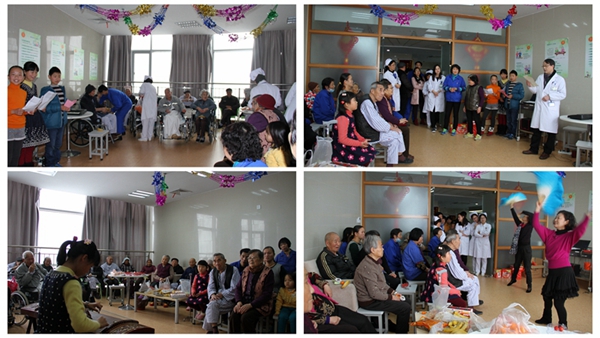 联欢会开始首先由老年康复科主任杨秋龙致新春贺词,接下来由医院职工子女、汾湖文化团、后勤人员等表演儿童舞、扇子舞,古筝、歌曲及电子琴演奏等。康复科的病友们边看演出边吃零食,会场热烈的气氛充分体现了医患之间和谐共处的祥和氛围。