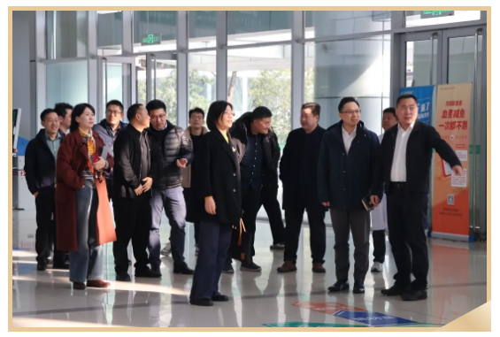 在吴江五院院长李军及领导班子的陪同下,上海十院领导一行实地走访了医院门诊大厅,以及老年科、眼科、泌尿外科、甲乳外科、疼痛科、一体化健康管理中心、DSA导管室等对外合作共建点位。通过沉浸式调研,考察团对我院学科建设成效、服务质量水平及融沪协作基础给予高度评价。